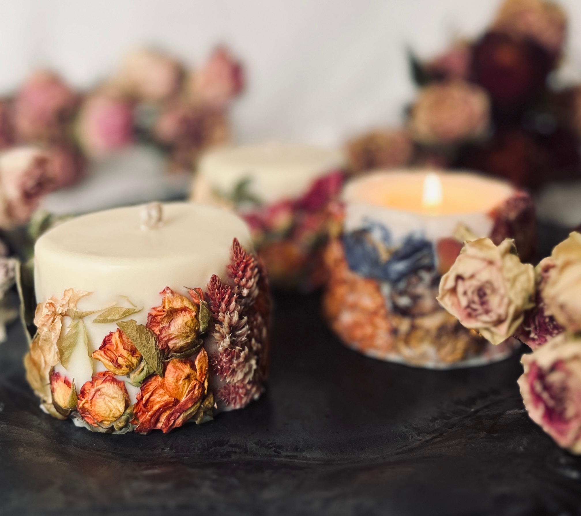 お花だけでなく、久留米絣のくくり糸やらんたい漆器の真竹の節、廃棄予定だった宝石、木屑、針金など、いろんな素材たちと出会いました。